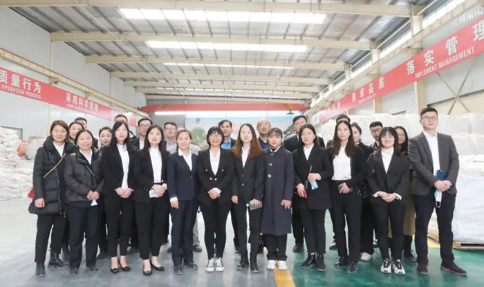 在理論知識學習后,為加深對產品生產線與產品專業知識的深入了解,行政人事部組織新員工驅車前往工廠進行了實地學習。在不定形耐火材料生產車間,白總先對新員工的到來表示了熱烈的歡迎,并介紹了工廠的生產模式與制度。程廠長就不定形耐火澆注料與可塑料的生產流程進行了詳細的講解,從原料的采購到碎石分級,從化學物理性質分析,到樣品制作與抽檢,及其施工方式與鑒別方式一一進行了詳細介紹。