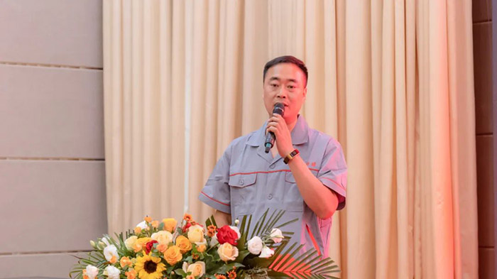 活動伊始,榮盛科技集團董事長楚科奇先發表了激情洋溢的講話。楚總指出,榮盛新威自掛牌以來,引起同行們的高度關注,特別是去年7.20洪水后,榮盛新威在宋總的領導下,沒有在困難面前低頭,而是越挫越勇,夜以繼日奮戰在一線,目前以嶄新的面貌呈現在同行面前。他衷心地感謝了宋總的努力與付出,并號召大家要學習宋總「以奮斗者的姿態砥礪前行,以追趕者的執著奮勇當先,以拼搏者的堅毅擔當實干」的企業家精神。