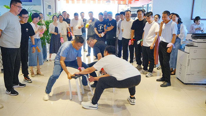 「你畫我猜」環(huán)節(jié),每隊(duì)派出精兵強(qiáng)將,接力作畫猜詞,只見畫筆在白板上快速游走,傳遞時(shí),隊(duì)員們都眉頭緊鎖、神情專注地思考,努力挖取線索,直到最后一人喊出正確答案,全場(chǎng)爆發(fā)熱烈的掌聲,團(tuán)隊(duì)的默契在這一刻達(dá)到極致,隊(duì)員們捧著豐富的禮品都露出勝利的喜悅。