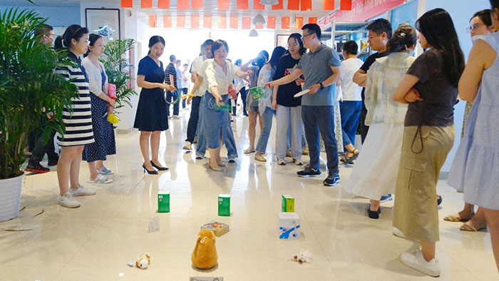 最后的「集體套圈」游戲里,面對(duì)游戲區(qū)的各類精美禮品,大家紛紛上陣,身體前傾、手臂輕揮,套圈在空中劃出弧線。有人精準(zhǔn)命中,引來一片喝彩;有人與獎(jiǎng)品失之交臂,也毫不氣餒,笑著準(zhǔn)備下一次投擲,F(xiàn)場(chǎng)歡聲笑語不斷,輕松愉快的氛圍中,大家盡情享受游戲帶來的驚喜與歡樂。
